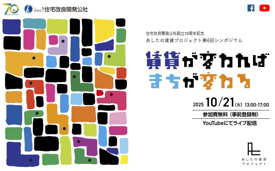 当協会の特別会員、大月敏雄氏(東京大学大学院工学系研究科)が基調講演を行います。 住宅改良開発公社設立70周年記念 あしたの賃貸プロジェクト第6回シンポジウム 「賃貸が変わればまちが変わる」 2023 11/28 Tue. 13:00-17:00 参加費無料(事前登録制)YouTubeにてライブ配信 詳細はリンクをご覧ください。