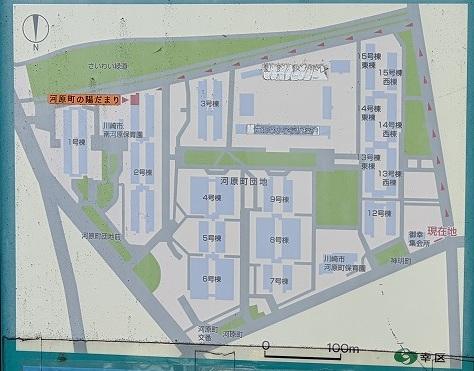 この緑道は、多摩川沿いにある工場へ荷物を運ぶ線路が通っていた跡地だったそうです。団地ができるころは、多摩川の土手にはテント街と呼ばれるブルーシートで生活しているしている方たちがまだまだたくさんいたというお話も伺いました。