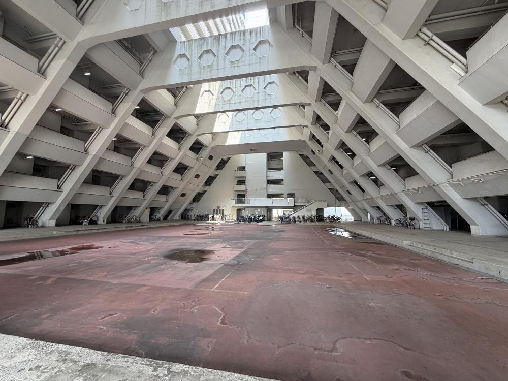 建物は耐震補強工事済みでした。通路は後から利便性の向上のためにつなげたのでしょうか?色が異なっています。